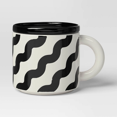 Enjoy your favorite drinks in fun style in this Squiggly Print Lidded Mug from Room Essentials™. This mug is made of stoneware and features squiggly print on a solid backdrop for a playful look, while the lid helps maintain the temperature of your drink. Suitable for both hot and cold beverages, this 17-fluid-ounce mug is both microwave and dishwasher safe for easy reheating and cleaning.