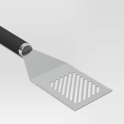 - Stainless steel grill tool set includes spatula, fork and tongs