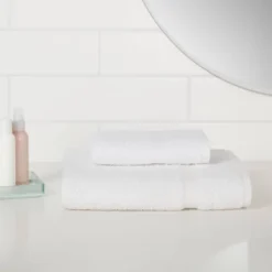 For a simplistic update to your bath accessories, pick up this Bath Towel from Room Essentials™. Designed in a solid color, this bath towel mixes easily with your existing decor style and color palette. Featuring a terry construction, this solid-color bath towel feels soft against your skin and boasts high absorbency for convenient drying. Hang this lightweight bath towel from your towel rod or arrange below the mirror with other coordinating towels to add a sophisticated look to your space.